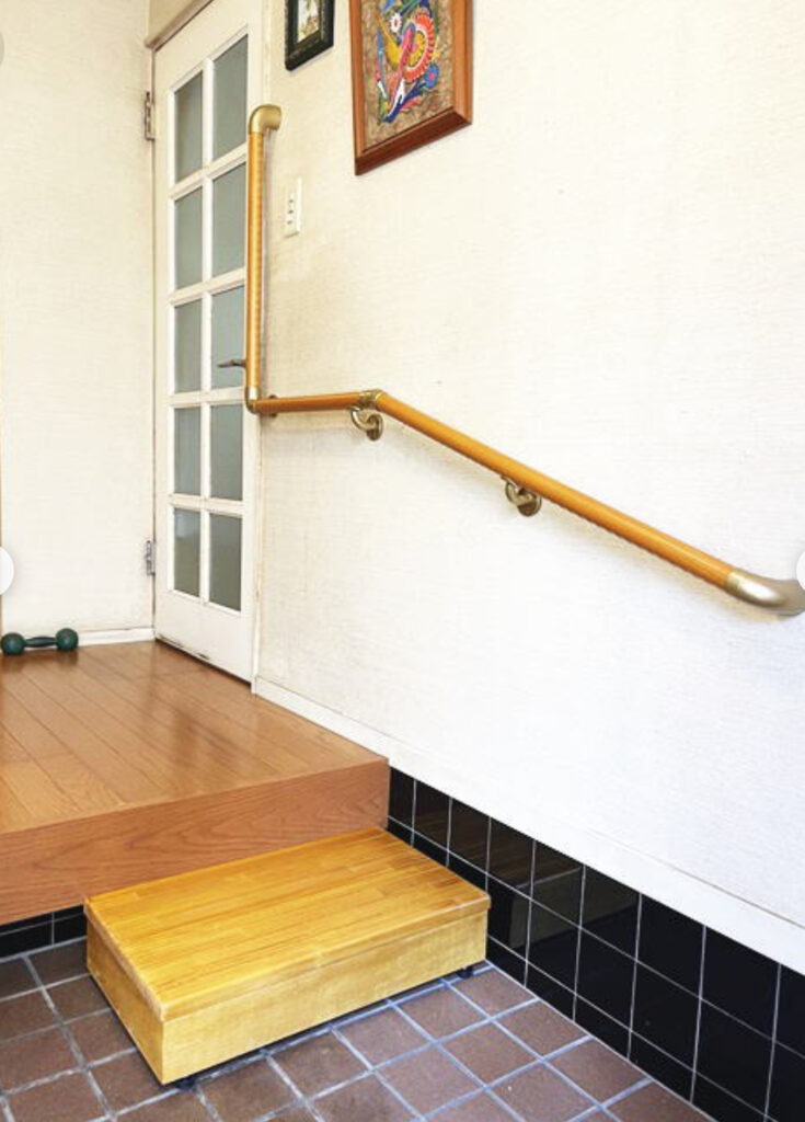 **靴を履く時の手すり活用**