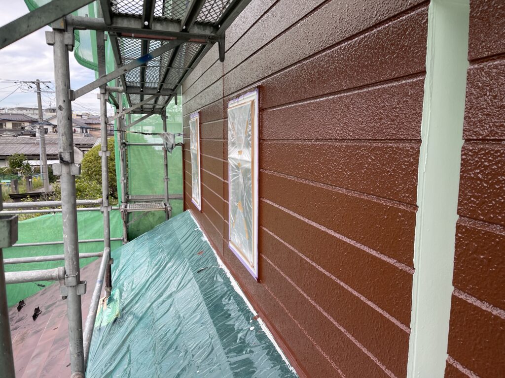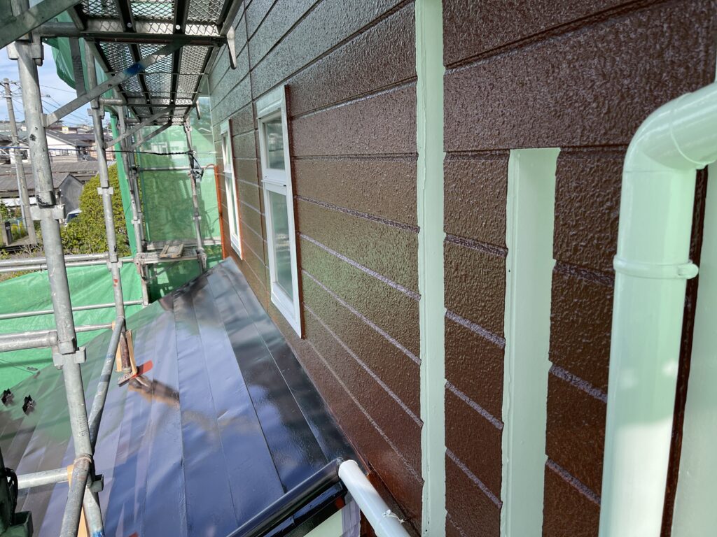(外壁の中塗りです、こちらも無機フッ素を使っています)