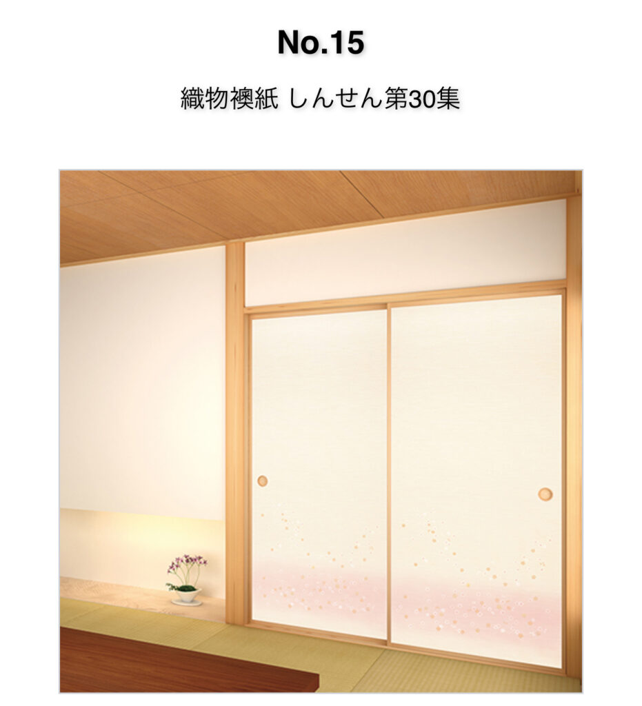 S様のお部屋の雰囲気や、ご希望をお伺いした結果、**ルノン株式会社の織物襖紙 しんせん第30集 No.15番**をご提案しました。
