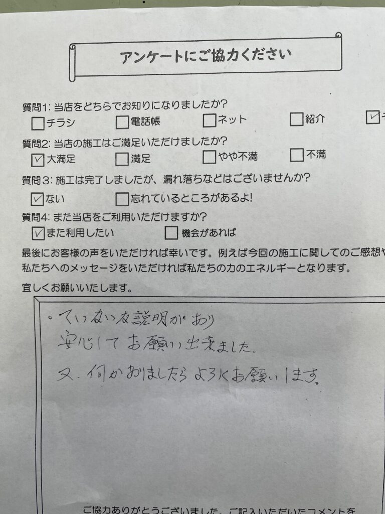 **「丁寧に工事をしてくださり、仕上がりも綺麗です」**