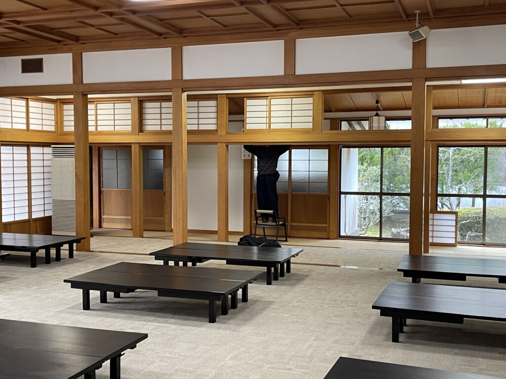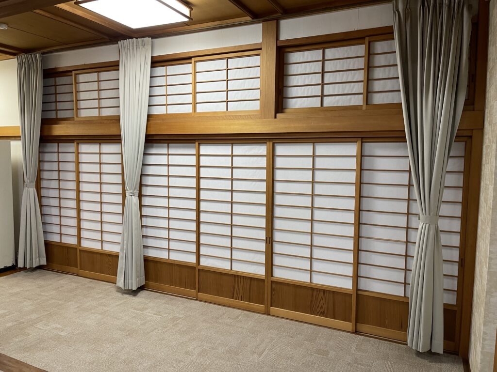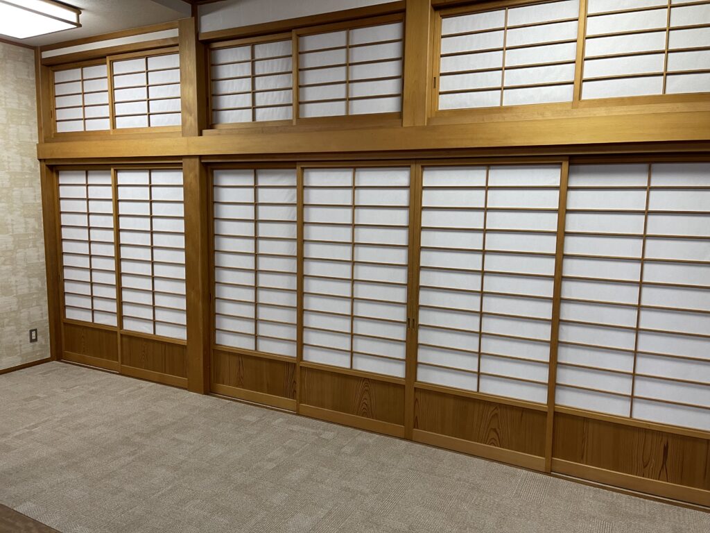 長年張り替えをしていなかった講堂の障子を、新しい障子紙に張り替えさせていただきました。